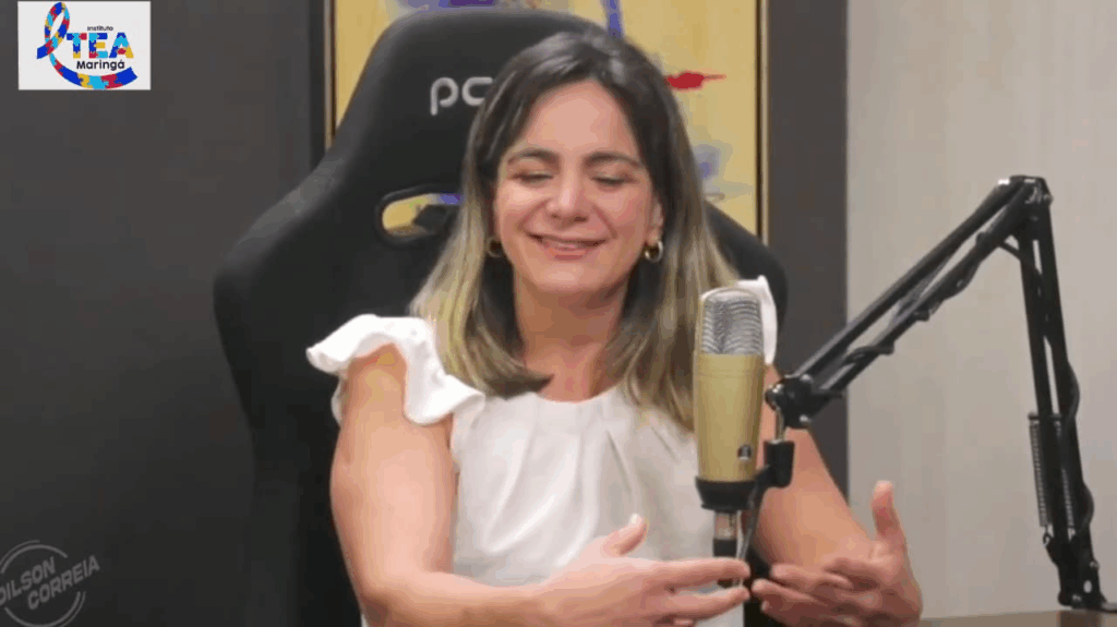 Raquel Sampaio, secretária do Instituto TEA em Maringá, é mãe de Davi, de 5 anos, diagnosticado com Transtorno do Espectro Autista (TEA), e de Daniel, de 3 anos, uma criança típica. Natural de São Paulo, formada em Administração e atualmente estudante de Direito, ela ressaltou a importância da rede de apoio para mães atípicas.