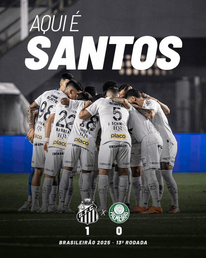 Quem acompanhou com atenção a vitória do Flamengo foi o Palmeiras, que, mesmo cheio de desfalques, precisava vencer o Santos na Vila Belmiro para permanecer na liderança do Brasileiro. Porém, o Verdão acabou derrotado por 1 a 0 na partida atrasada da 13ª rodada da competição.